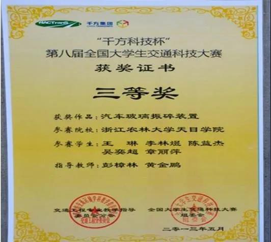 围绕开展现代汽车检测技术与电子信息化相结合的特色人才培养目标,深化校企合作,与众多企业公司联合培养汽车查勘、定损、理赔、汽车故障诊断等高级技术人员。引入汽车(二手车)评估师、汽车维修工程师等汽车行业资格认证考试,鼓励学生参加全国交通科技大赛、大学生智能汽车竞赛等大学生创新创业训练,获得全国大学生交通科技大赛三等奖和优秀奖、浙江省大学生创业设计大赛二等奖,授权专利10余项。